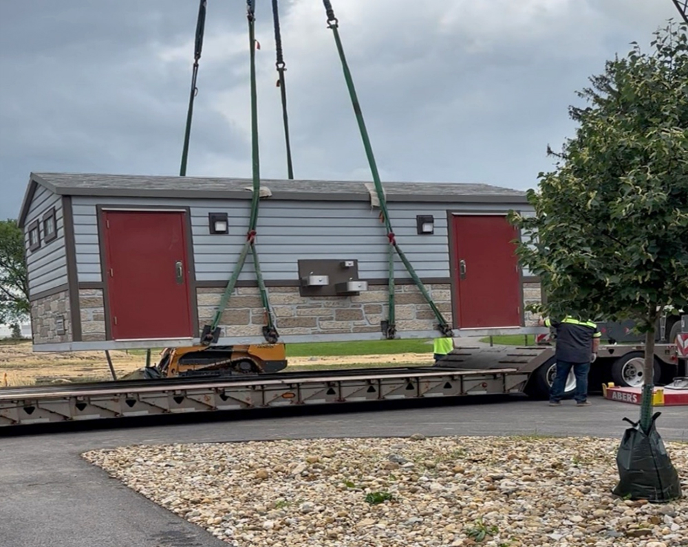 Bank Run precast restroom lifted into place_Melissa Turpening
