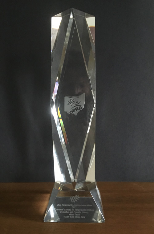 In addition to the Governor’s Award trophy, Columbus and Franklin County Metro Parks received a proclamation from Ohio Governor John Kasich and a $500 contribution to their parks and recreation foundation.