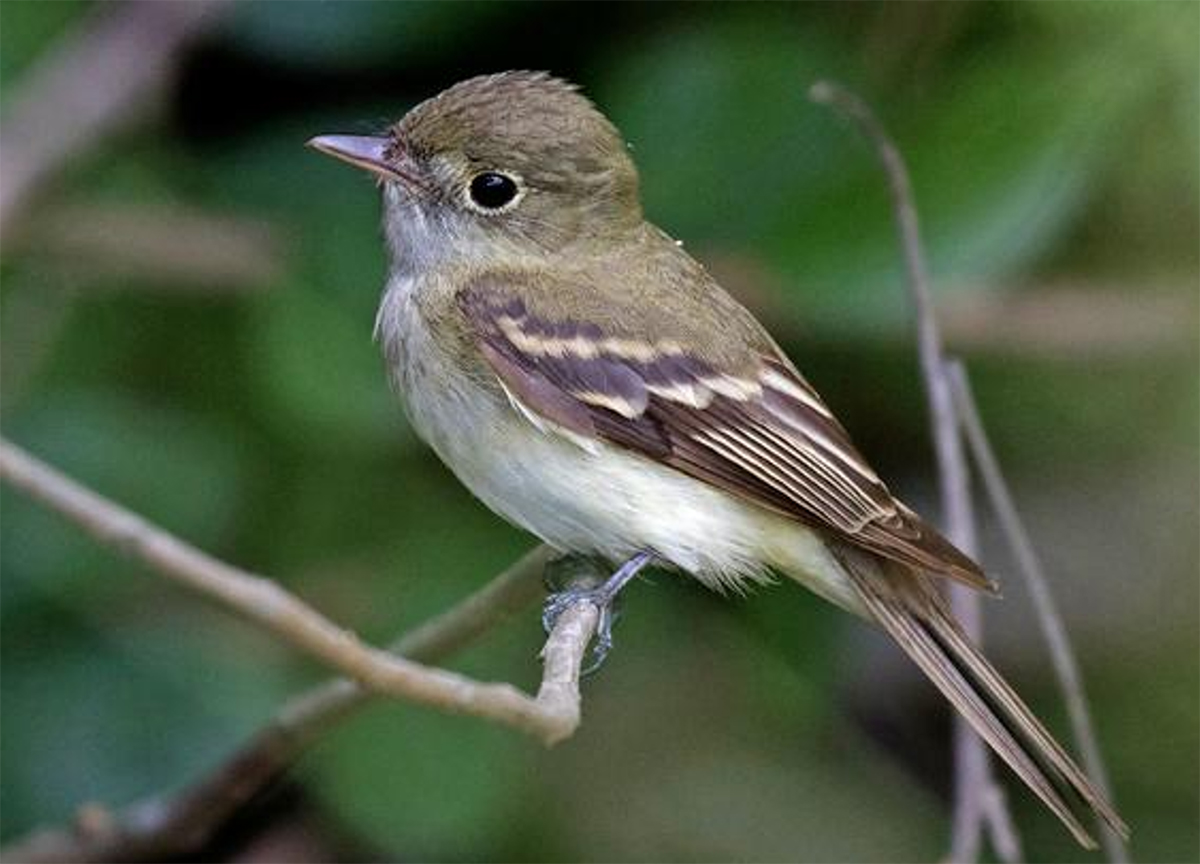 There are a few different species of flycatchers that inhabit our area. One of those species is the Acadian flycatcher, (Empidonax virescens Vieillot). The generic name, Empidonax, is Greek for “gnat or mosquito master” or “king of gnats or mosquitoes.” The specific epithet, virescens, is Latin for “becoming green,” “to turn green” or “growing green.” This is due to their olive green back or their yellow-green underside.