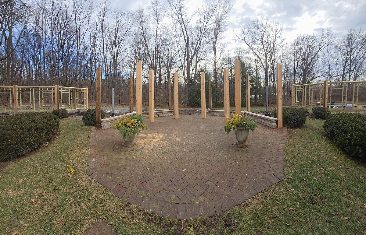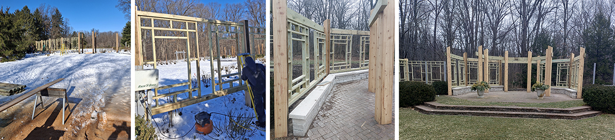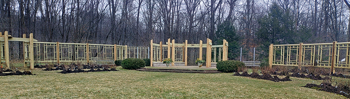 Built in 1988, the rose trellis is one of the oldest, largest and most iconic structures we have here at Inniswood. We felt it was important to preserve that history and maintain its design characteristics. While some changes to the trellis have been made, the overall size and shape is exactly the same. Most of the changes were made to increase the longevity and ease of maintenance, and will go mostly unnoticed by the casual observer. Once we removed the wood wrapping the posts, we discovered the posts to still be in excellent shape, allowing us to reuse them and save money on the project. The panels between the posts are essentially the same design, made with dimensional lumber instead of custom milled lumber, saving money now, and later if and when we need to make repairs. Their construction is also a little different, done in a way to make repairs down the road much easier. The beams across the top of each panel have a rounded top, instead of flat, to help shed water and reduce opportunities for wood rot. It was also important that we undertook the work in winter, when the roses were dormant. We were delighted that no damage was done to the roses and we are now in a really good blooming year, so everything is looking great.