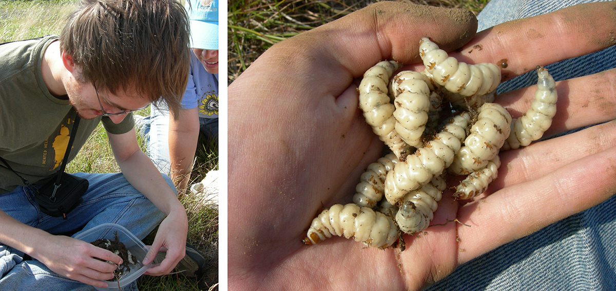 Craig with larva of American burying beetles from his internship on Nantucket Island in 2007.