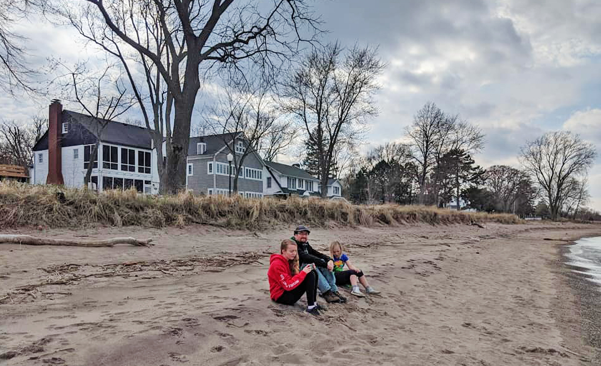 Craig and his daughters at the beach in Huron.