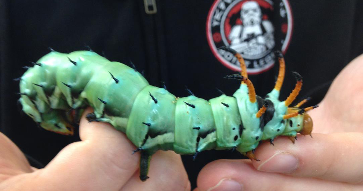 When I was 19-years-old and thought I knew everything – what teenager doesn’t – I went to a Bugstravaganza program at Chestnut Ridge Metro Park. Someone had brought in caterpillars to show. The guy had a plastic tub with these turquoise caterpillars with bristly orange horns on them. He said they were native to Ohio and that they live in the tops of walnut, sweetgum and hickory trees. I was gob smacked! I couldn’t believe what I was seeing. Most caterpillars grow to 2 inches long at most, but these beauties were between 5 and 6 inches long! I immediately fell in love with these hickory horned devils and thirsted to know more about them. They’re my favorite animal in the world and they provoked my interest in moths.