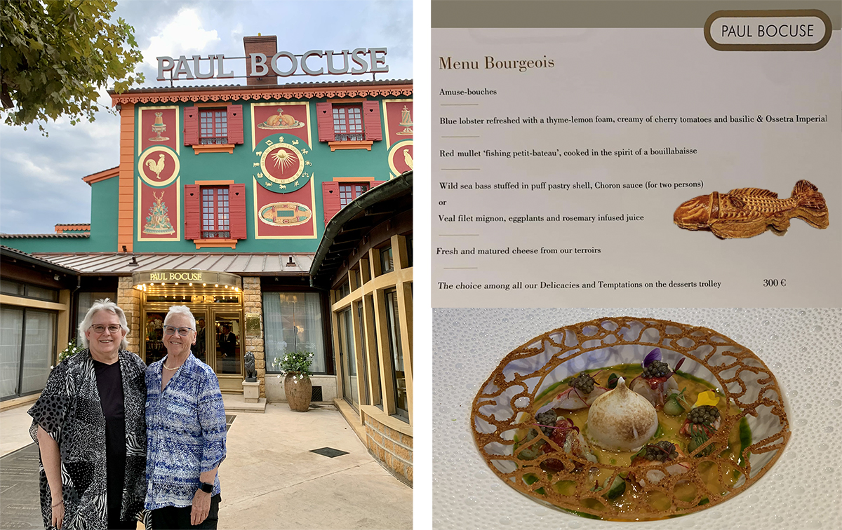I’m just back from a five-week trip to Europe. Marsha had taken a 30-week French cooking class and really wanted to go to France. We spent five days in Paris, in between the Olympics and the Paralympics, and moved on from there to Lyon, to visit one of the most famous restaurants in the world. It’s named simply as Paul Bocuse, after its founder, with an alternative name of L’Auberge du Pont de Collonges, meaning the Inn on the Bridge at Collonges (which is a commune or suburb of Lyon). It was the highlight of our trip for Marsha.