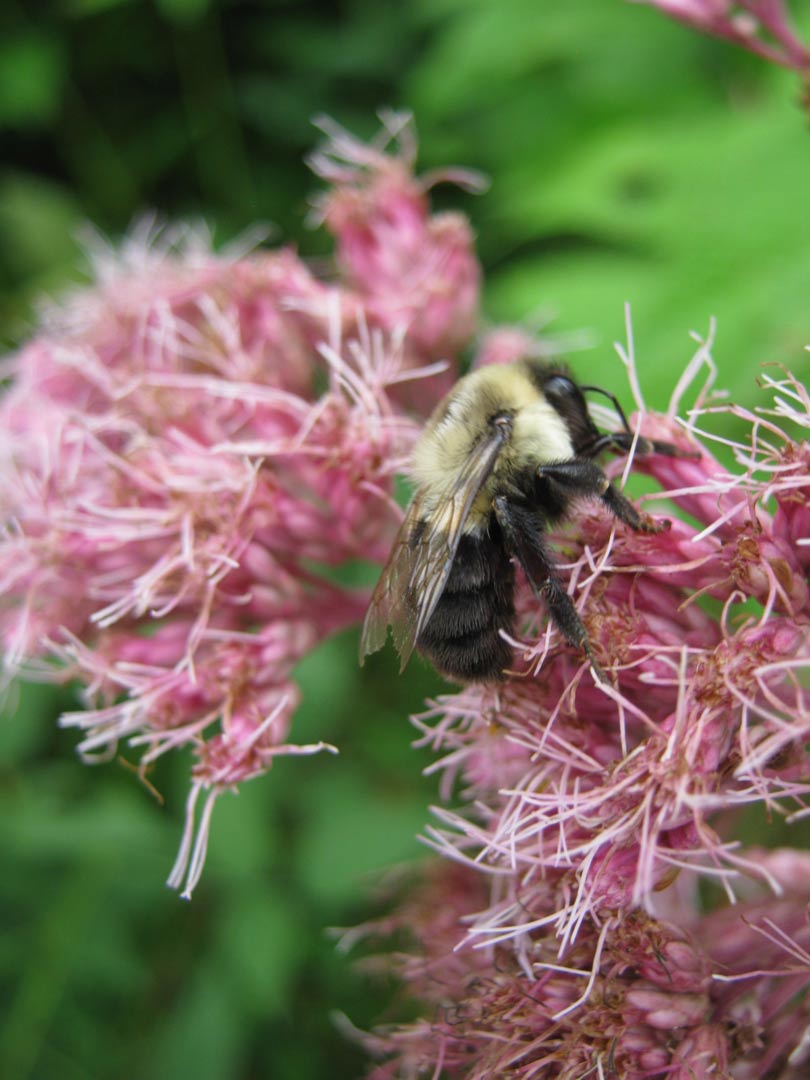 Blueberries, eggplants and tomatoes need bumble bees for pollination, as does the common milkweed flower. Only the bumble bee has a strong enough leg to tear through a slit in the milkweed flower and pull out the pollinia (mass of pollen grains) inside. Because bumble bees forage in cool and cloudy weather better than many other species, it increases the time they are able to be out pollinating.