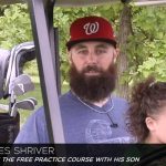 Metro Parks Executive Director Tim Moloney meets Myles and Andre Shriver on the practice course at Blacklick Woods Golf Courses, as free golf for Franklin County residents becomes a reality.