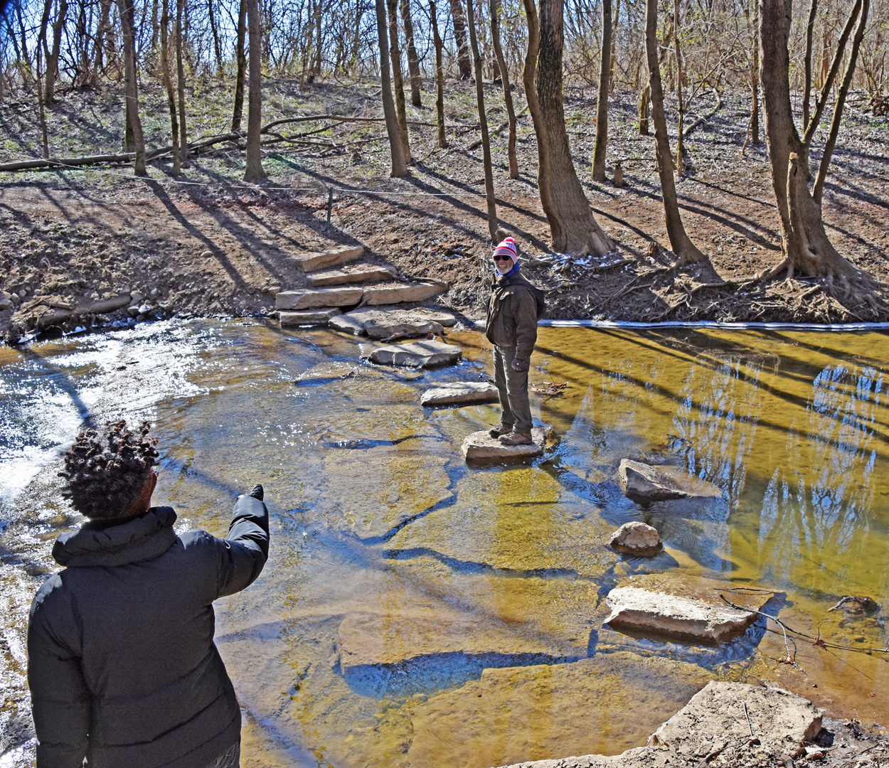 The water level was a little high on the Scioto River, making this stepping-stone river crossing on the Mingo Trail a little too challenging.
