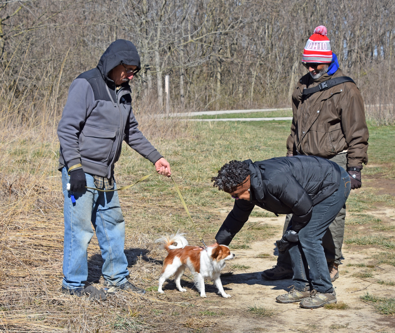Pat and Donald enjoyed meeting this park visitor walking his dog at Scioto Grove Metro Park.