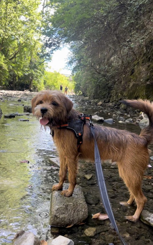 Bruno experienced their first waterfall at Quarry Trails! Photo Ashleigh Lemon