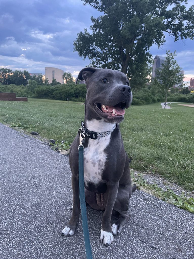Cola on one of many summer evening walks at Scioto Grove Metro Park. Photo submitted by Kaitlyn and Brandon