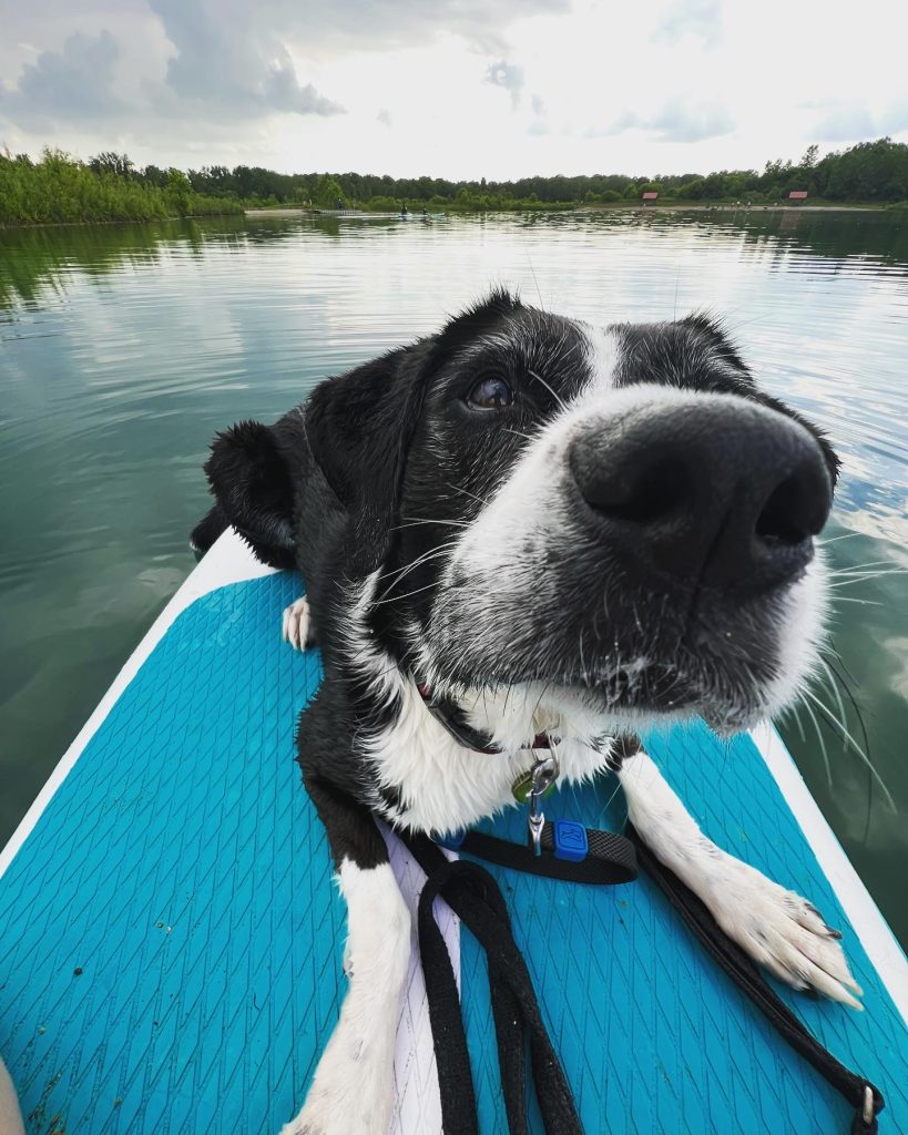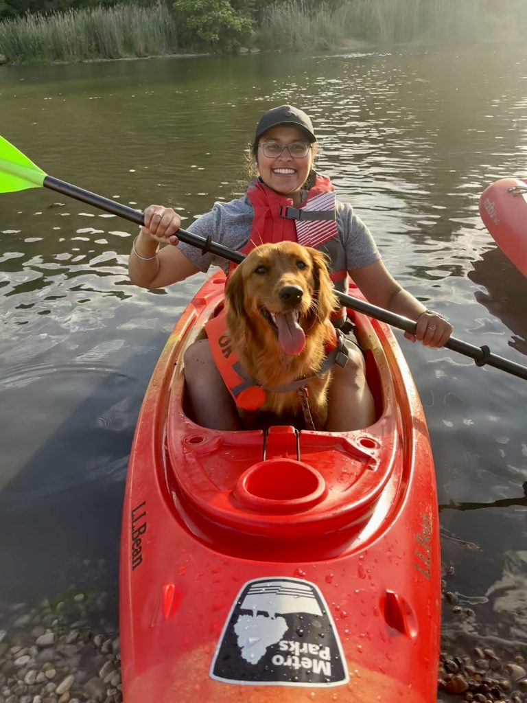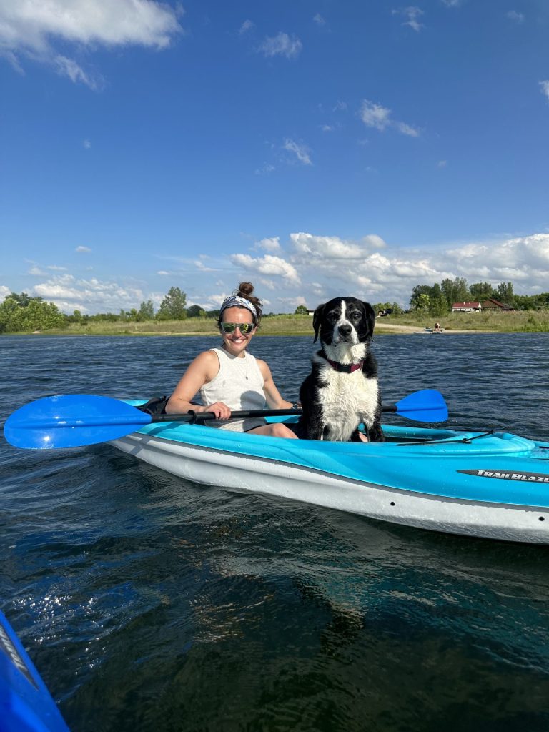 Dixie loves kayaking and paddleboarding at Prairie Oaks! Photo submitted by Kelsie Andrews