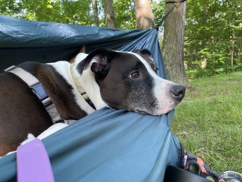 Jerzi relaxes in a hammock after a nice long hike at Battelle Darby Creek Metro Park. Photo Katie Stevens