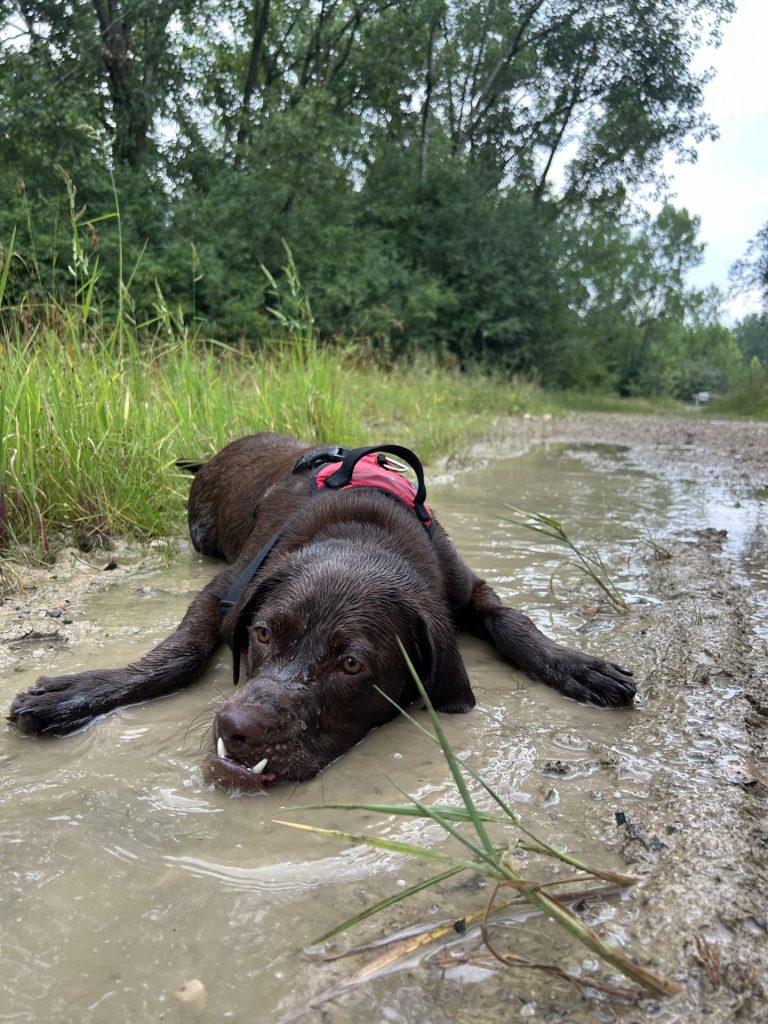 Ricky decided to cool off in the mud at Quarry Trails Metro Park. Photo Kelly McGraw