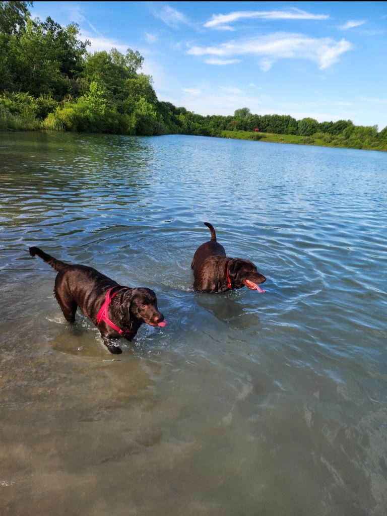 Siggi and Evie love swimming at Prairie Oaks. Photo Jill Mann