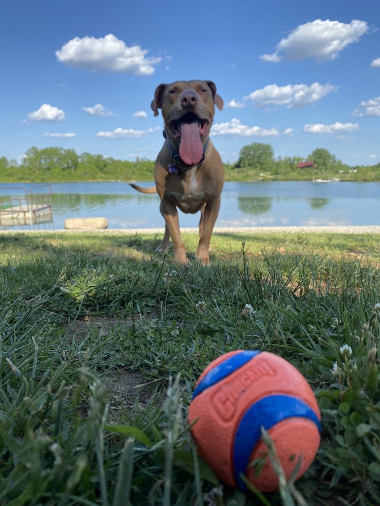 Lenny loves playing ball at Prairie Oaks. Photo by Mallory Golski