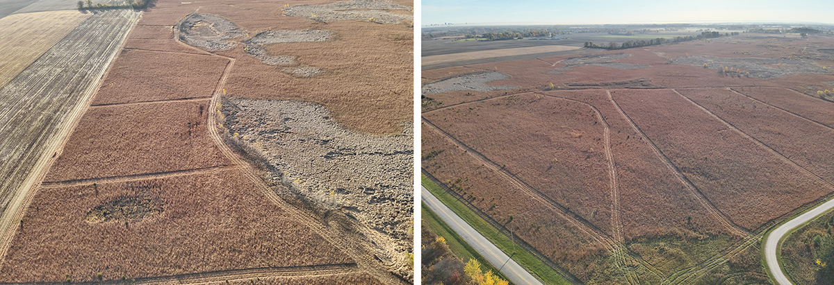 Non-permanent firebreaks are those that are created with a mower or brush hog. The process consists of mowing three mower widths (approximately 18-20 feet wide) around the border of our burn unit. The flames of the prescribed burn are not able to reach across the firebreak and ignite sections of prairie outside of our original burn unit.