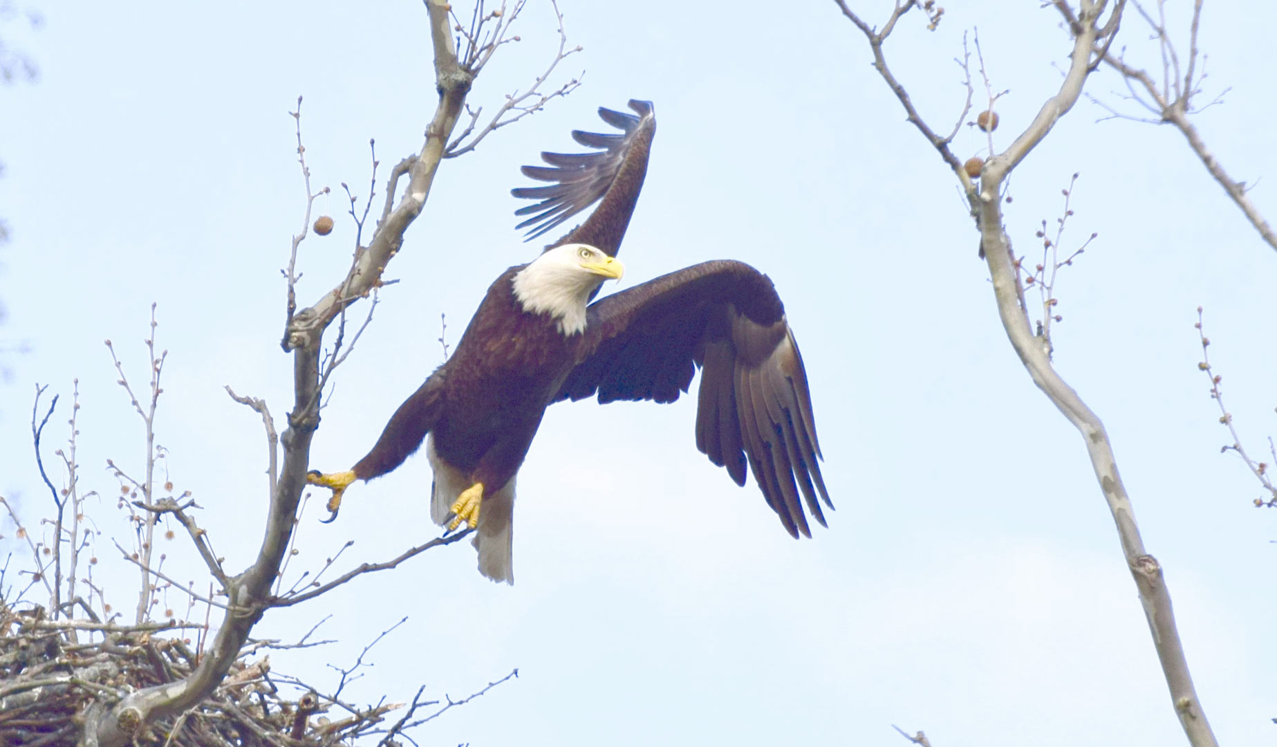 Eagle flying from the nest at Highbanks. (Tom Kitchen)