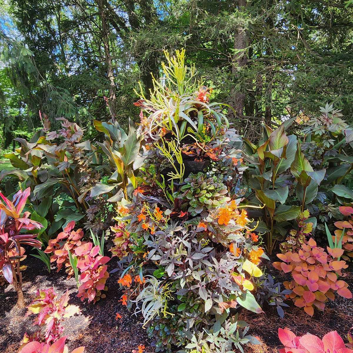 Last year’s seasonal display theme, Vertical Visions, saw the gardens reach new heights. A wide array of tall plants and unique structures had our garden visitors in awe asking “how can this theme be topped?” Enter Elements of Nature: Earth, Air, Fire and Water, our 2024 display theme. When part-time gardener Devin Osborn proposed the idea I knew it was going to fuel an explosion of design ideas from our uber-talented horticulture staff. Any anxiety about topping last year’s theme quickly melted away.