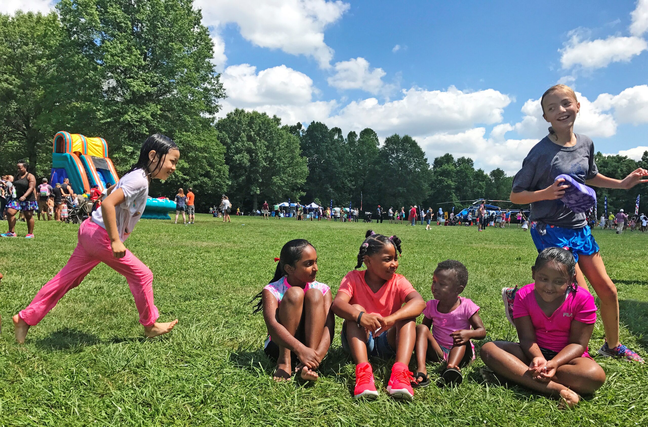 Blow bubbles and cool off in misting tents