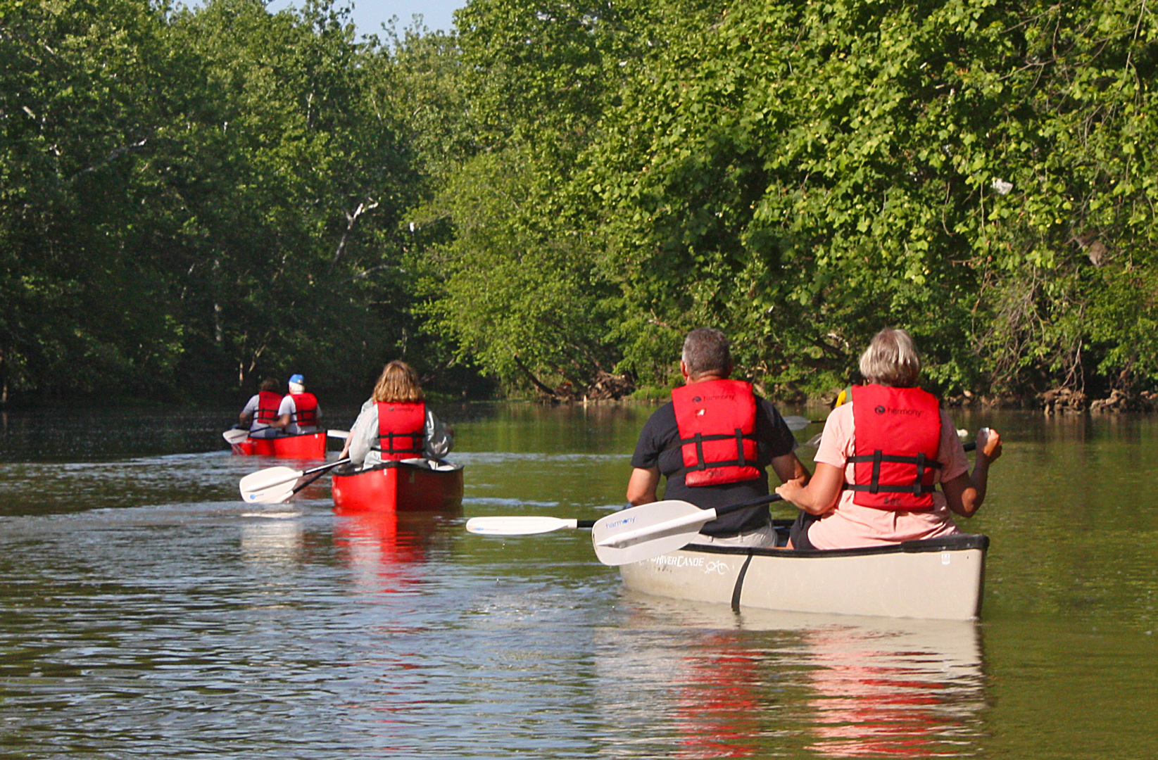 Different species of turtles can be seen sunning themselves on the rocks and logs that line banks of the creek in many areas. Beaver cuttings show us that the creature has been busy overnight. Bird song abounds as over 100 different species of songsters nest throughout the valley. Owls are not an uncommon sight as they roost in a large tree next to the water. They’ll even open an eye and watch as you paddle by. And of course, you’ll see snakes swimming or basking in the sun. But don’t worry about them—there hasn’t been a venomous snake found in Central Ohio in over 150 years.