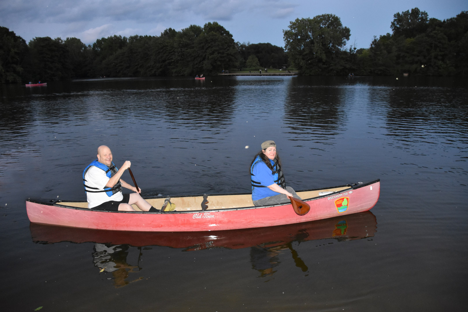 Canoeists float on Schrock Lake at the Friday Night Float program. (Virginia Gordon)