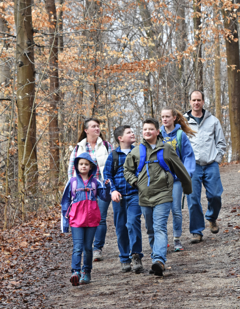 Brandy and her eight kids—isn’t that a fantastic adventure in itself?—began their training taking long hikes at Highbanks, and have now moved to phase II of the training—hiking with backpacks. The kids, age 9 to 17, will follow the example of their parents, Brandy and Matt, and make the backpacks a little heavier each week, and add more gear. They also hike at Glacier Ridge, Prairie Oaks and Sharon Woods (where Brandy takes some of her kids for “the great Homeschool programs they have there.”) They intend to try out Scioto Grove Metro Park and add it as a regular training spot, and will be doing some of this year’s winter hikes. For variety, and to find rougher terrain, they will also take some hikes at some of the state parks in southern Ohio as the weeks progress.