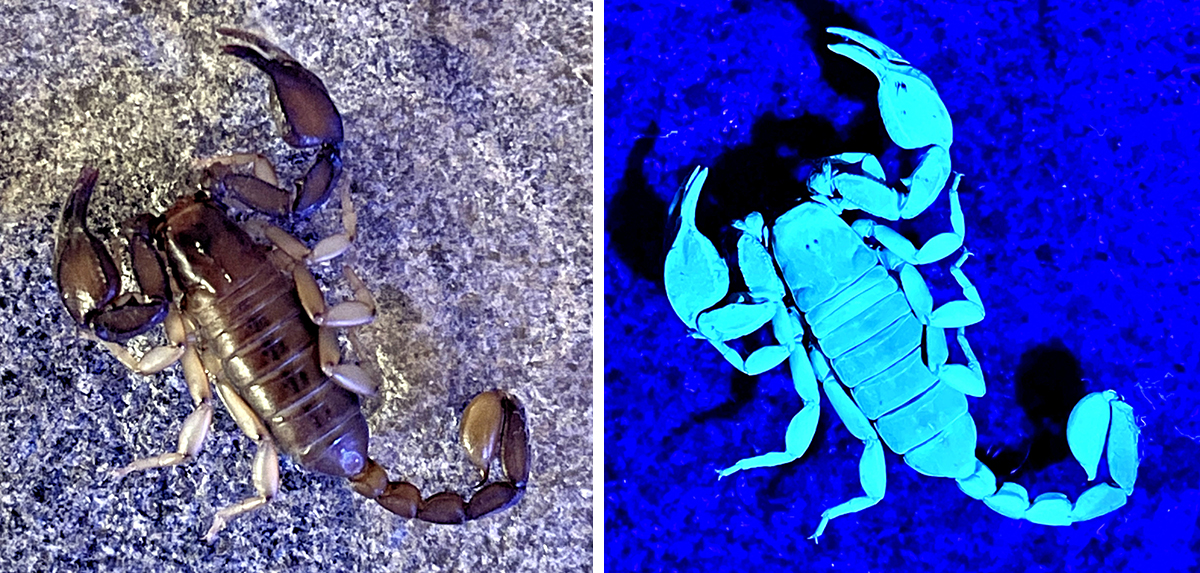 As people learn about the UV flashlight technique, more organisms have been found to fluoresce. Some slugs, spiders, crickets, daddy-longlegs, sea anemones, corals, fish, reptiles, amphibians, and even saw-whet owls can glow in this way! What else is out there to discover?