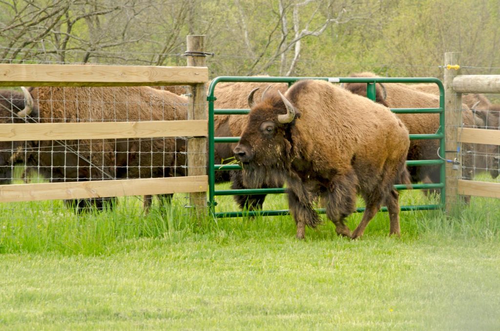 The shaggy haired 800-pound bison bounded out of the trailer and into the holding area at Battelle Darby Creek Metro Park after a two-hour drive from The Wilds. After several minutes of nosing around the enclosure and sniffing the prairie grasses, she ran into the 40-acre pasture and came face to face with the small herd of bison who claim this part of the Darby Plains as home.