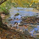 This in turn helps to keep oxygen levels in the stream high enough to sustain fish, mussels and aquatic insects. These shade trees are some of the biggest in the parks, such as giant sycamores, towering cottonwoods and spreading box elders.