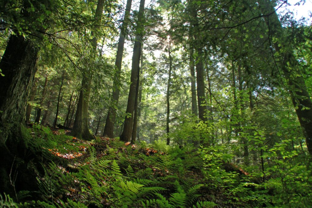 Trees and ferns off the Hemlock Trail at Clear Creek. (Andrew Boose)