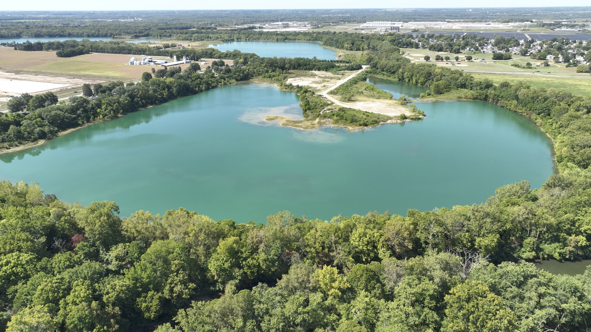 - Scenic views of water, fields and wooded areas.