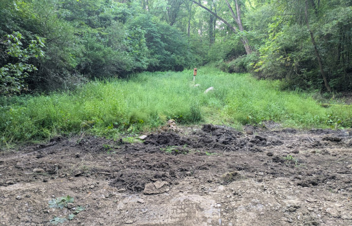 Rocky Fork berm, finally free of woody vegetation. The berm getting a root canal. Photos Olivia Garas