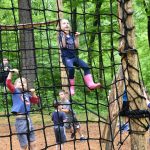 Maris Zugaro climbs the cargo net at the Blendon Woods natural play area.