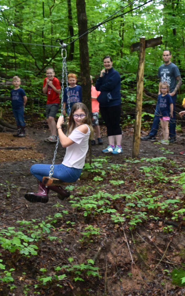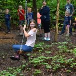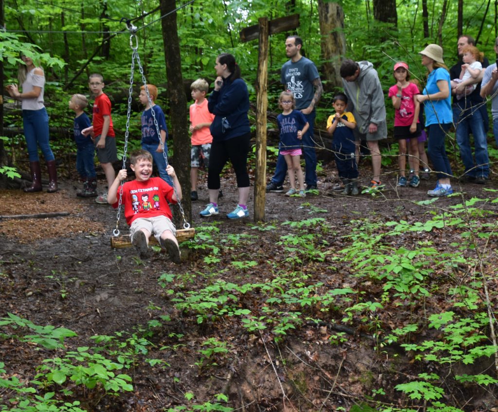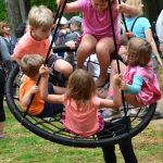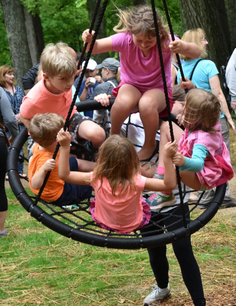 Kids play on the basket swing at the Blendon Woods natural play area.