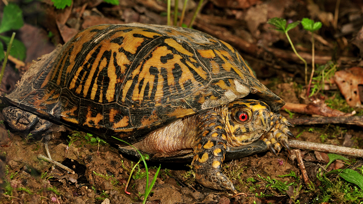Look for these umbrella-like plants in the dappled shade of hardwood forest bottoms, but count yourself lucky if you manage to find a ripe, uneaten fruit; wildlife of all kinds love mayapple, including and especially box turtles!