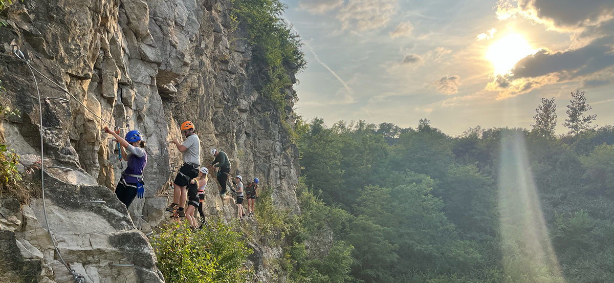 For those looking for a little more of a challenge, sign up for a via ferrata climb at Quarry Trails Metro Park. Climbs consist of traveling along an old quarry cliff face, traversing upon metal rungs and rocks while being connected to a cable that extends the length of the course. We offer three to four climbs a week up until the middle of December and start back up again in the spring! These staff-guided climbs are a very exciting opportunity to see the Metro Park from a different perspective.