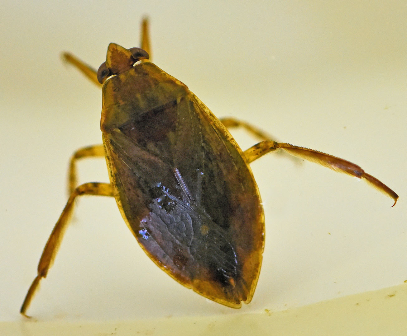 Giant water bugs are not always as big as some of the beetles mentioned above. The one we found was about 1-inch long and it was carrying eggs on its back. That means it is a male, as the females deposit their eggs onto the male’s back so he can care for them until they hatch. Giant water bugs have large, sharp front legs that are used to catch prey as big as tadpoles, insects and even fish. They are nicknamed “toe-biters.”