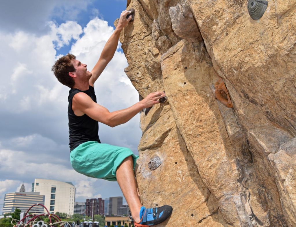 At 35-feet high, the climbing wall is one of the largest free outdoor climbing walls in the midwest. It has four auto-belays, requiring the user to wear a harness. It also has multiple top anchors allowing ropes and users to utilize the wall at the same time. Beginners will have ample opportunities to learn about the sport at a variety of climbing clinics from 2 to 4pm. There are opportunities throughout the year for beginners to take up the sport, by signing up for one of our ranger-led Learn the Ropes programs. They are usually held on the last Wednesday of the month and participants can learn the basics of top rope climbing including: knots, equipment familiarity, techniques of belaying and of course, rock climbing.