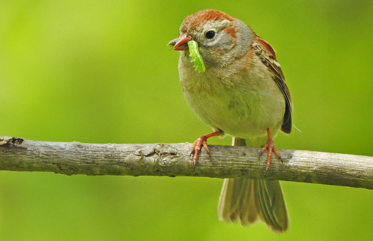 Field sparrow with a caterpillar lunch at Highbanks. Photo Adam Brandemihl