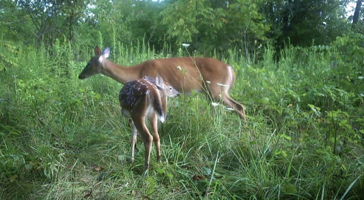 Mother and fawn in a grassy meadow. Photo R Matt Brigner