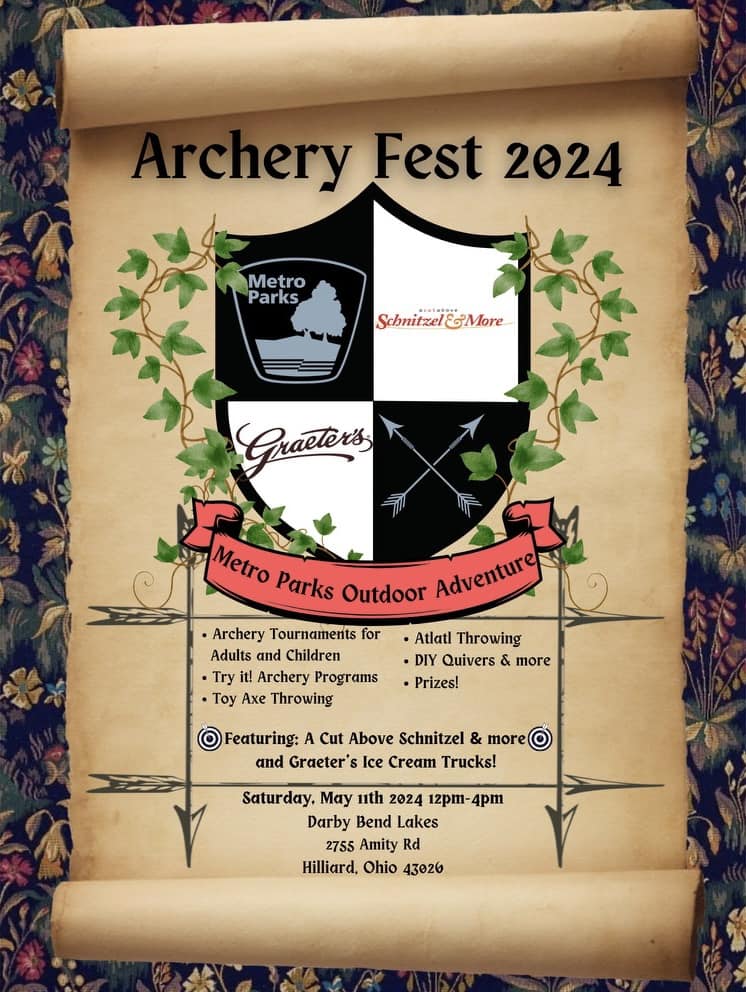 Hear ye! Hear ye! Calling all archers! The King and Queen have called for a competition of their finest archers to compete in an archery competition on May 11th from 12pm-4pm at Prairie Oaks Metro Parks, Darby Bend Lakes! Enjoy a fun and free Archery Fest, with activities for all ages.