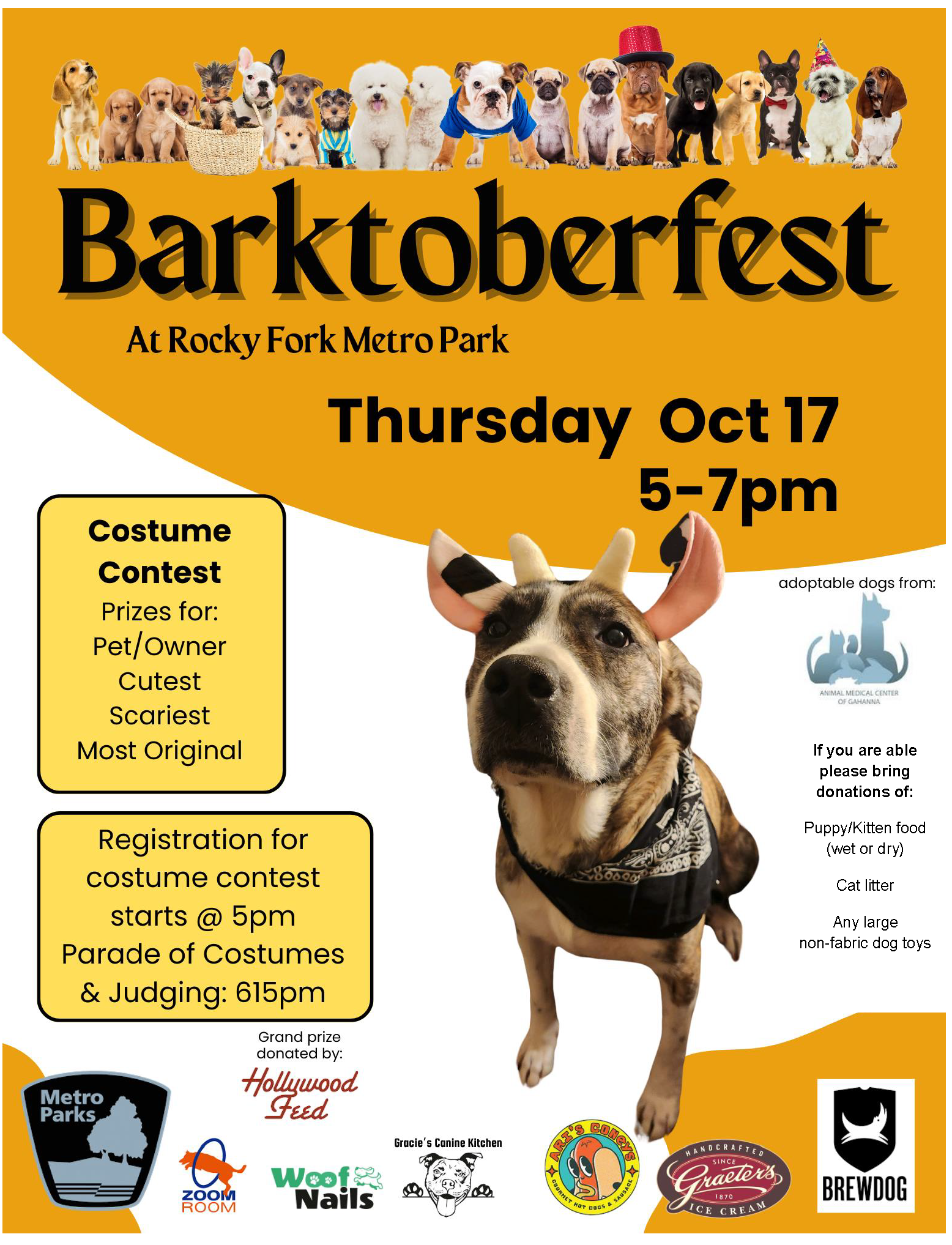 Fun for you and your canine best friend! We’ll have food trucks and a costume contest!