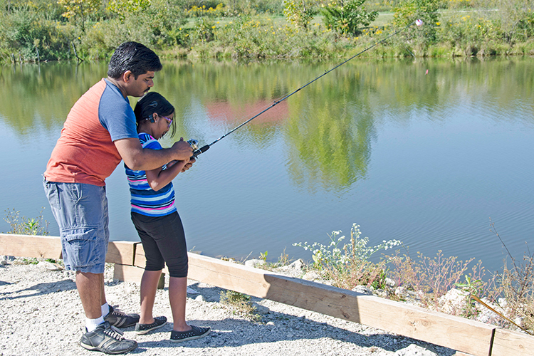There are picnic shelters at the Prairie View and Whispering Oaks Picnic Areas, and two shelters in the Darby Bend Lakes area, all with tables and grills and available on a first-come first-served basis. The Prairie View area also has play equipment.