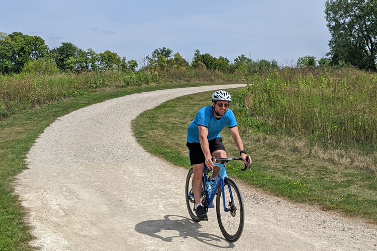 Crosses two steep hills, goes through prairies and runs alongside Big Darby Creek