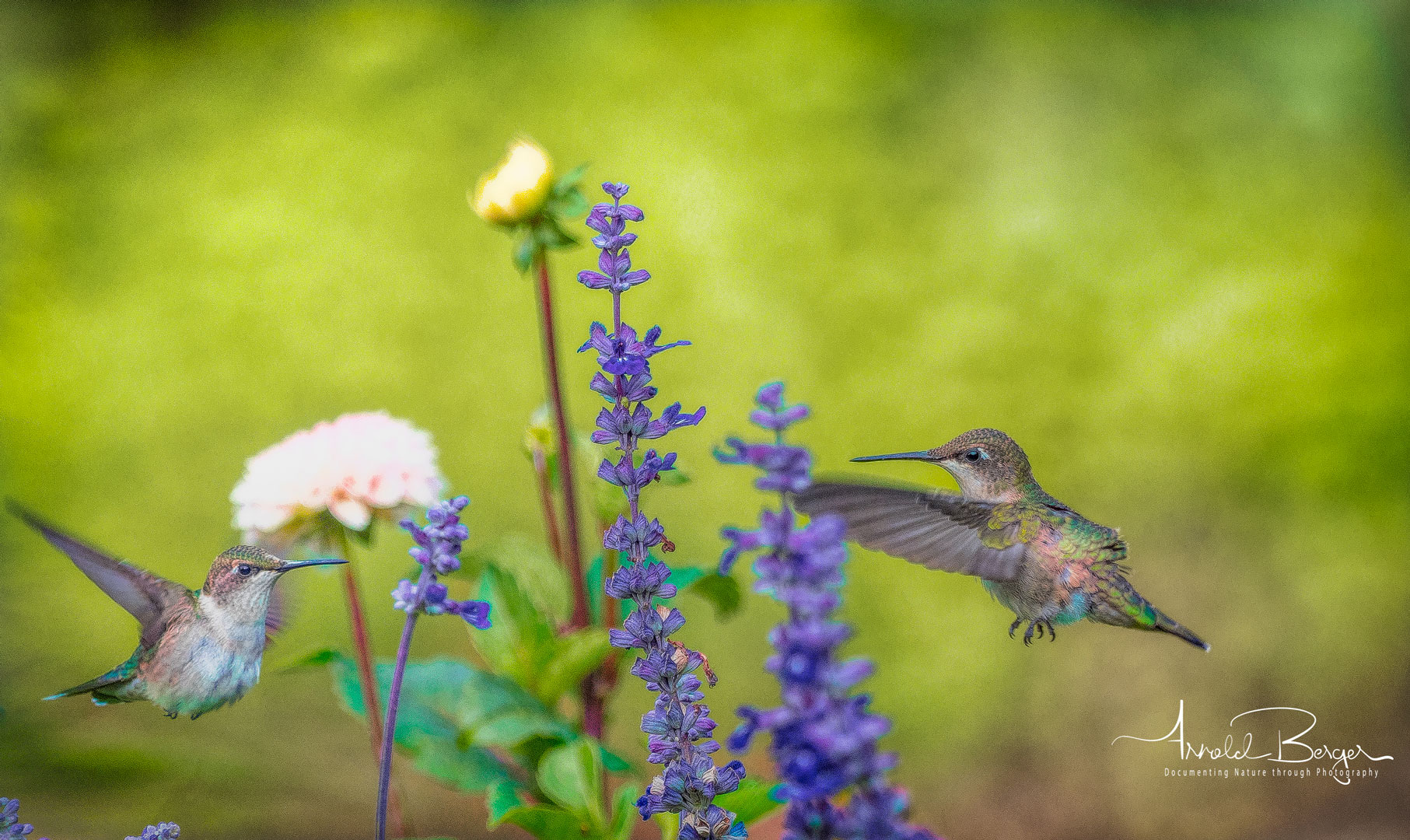 Arnie Berger, "Two Hummingbirds Claiming Their Territory" - Inniswood Metro Gardens